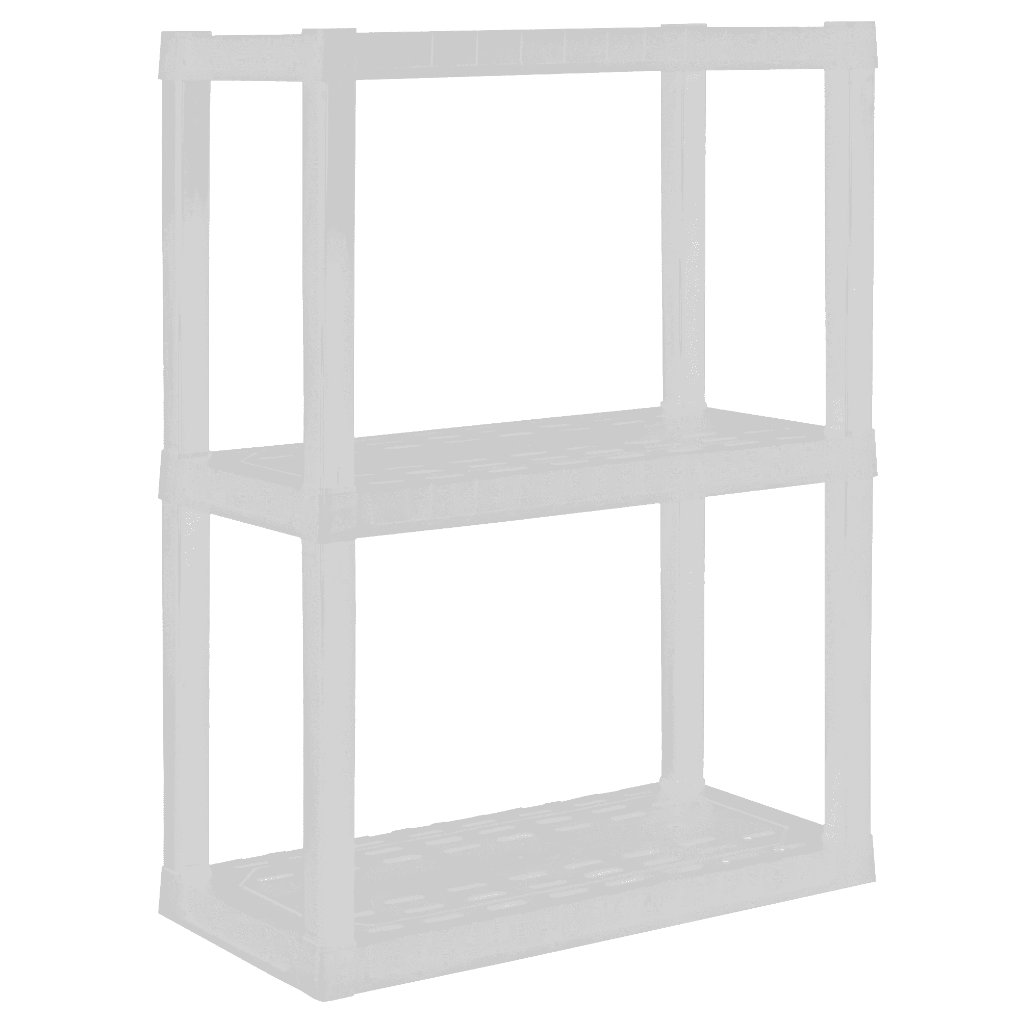 Maximize your storage space with this versatile 3-tier shelving unit, proudly manufactured in North America. The lightweight unit snaps together with no tools required and the heavy-duty molded plastic resin shelves hold up to 100 lbs (45 kg) each. Whether you are reorganizing your shoe collection, decluttering the tool shed, or spring cleaning the toy room, Hyper Tough has the perfect shelving solution for you!