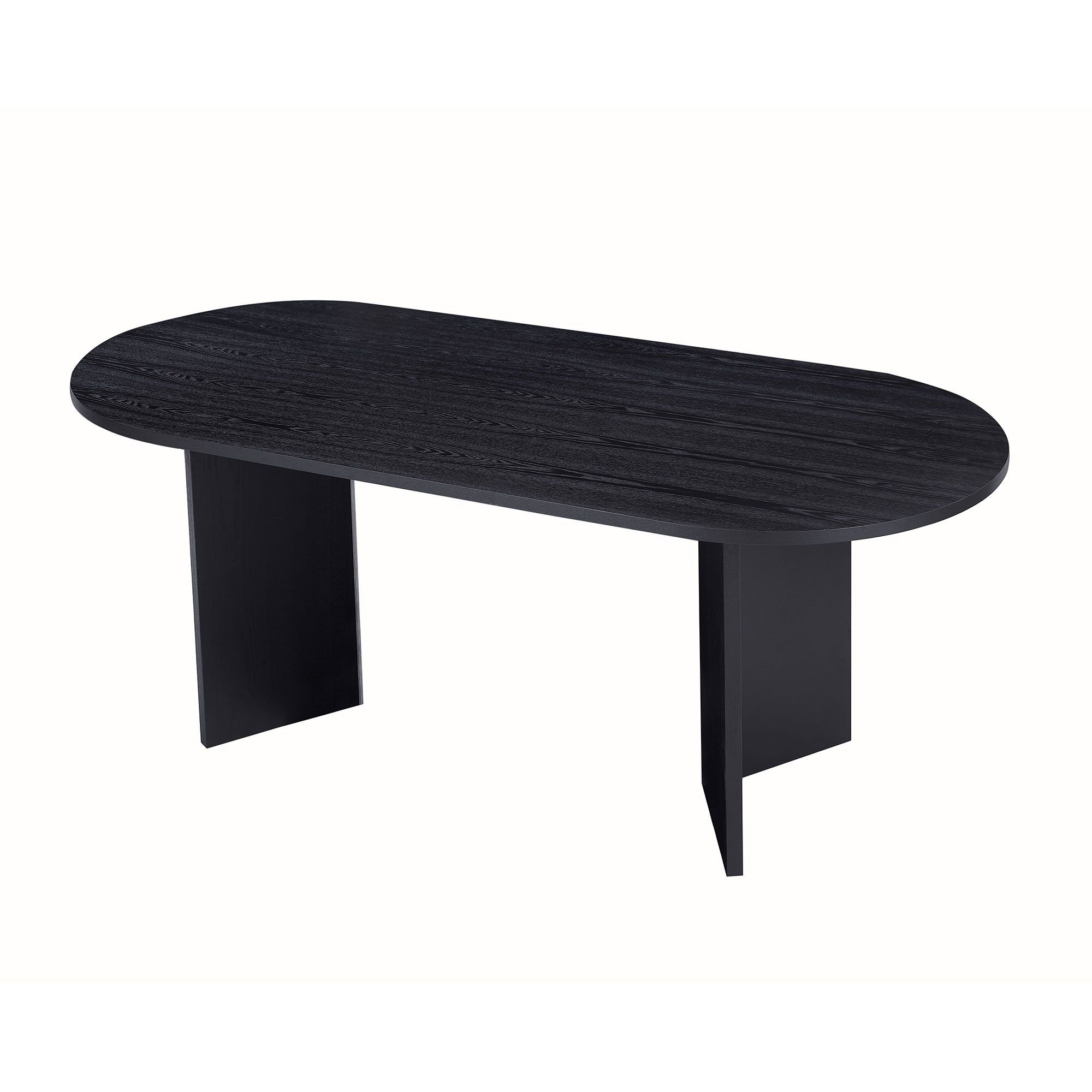 Wood Dining Table Kitchen Table Small Space Dining Table black desk topWood Dining Table Kitchen Table Small Space Dining Table black desk top for kitchen living room or office .This dining table equipped with 78" x 35.1" table top. Suitable for 4-8 person at the same time. Not only as dining kitchen table, it can also be display table, large coffee table, presentation table, etc. A good choice for family meeting or parties. The desktop board is made of MDF material for non-toxic and environment protection, this dining table will support long-term use. 1inch thickness make it stable and durable, wood color brings mid-century and industrial style to your room .Easy to Setup & Clean: With full set of screws and tools and instruction, it is easy to assemble, just need to take 5-10 minutes. Smooth table top can be quick cleaned with a damp cloth. Put the screws in loosely until all pieces are together and then go back and tighten them all.