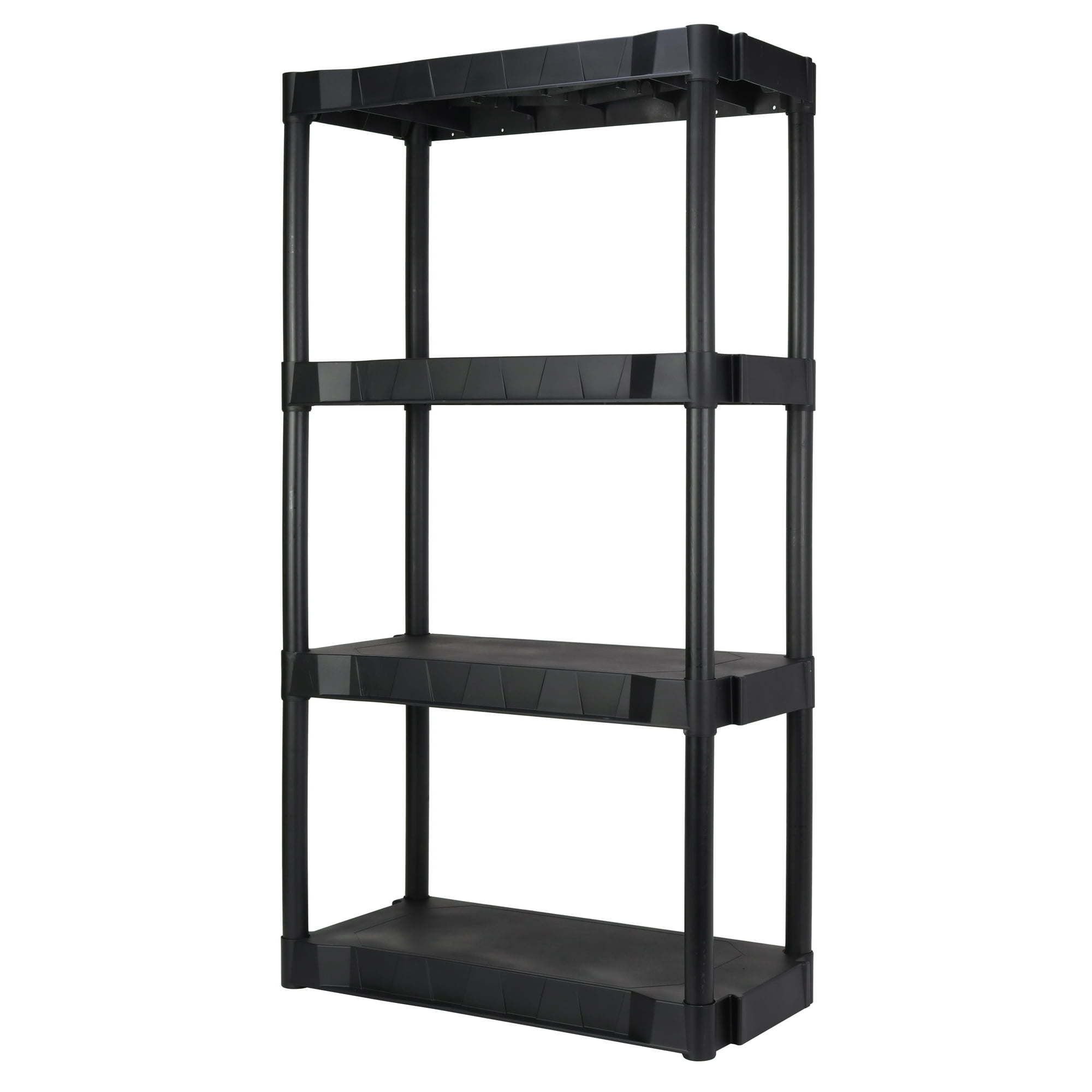 This Adult Black Plastic 4 Shelf Shelving Unit is a great solution for all your storage needs. This is perfect for any space where you might need reliable, sturdy shelving, such as, the garage, basement, utility room or closet. It is made from a durable and long-lasting black polypropylene plastic that can hold up to 70 pounds per shelf when evenly distributed. This product has interlocking shelves that require no tools to assemble and comes with a QR code video tutorial. This shelving unit is easy to maintain and is built for years of use. Pick up yours today, while supplies last, only available at and .com.