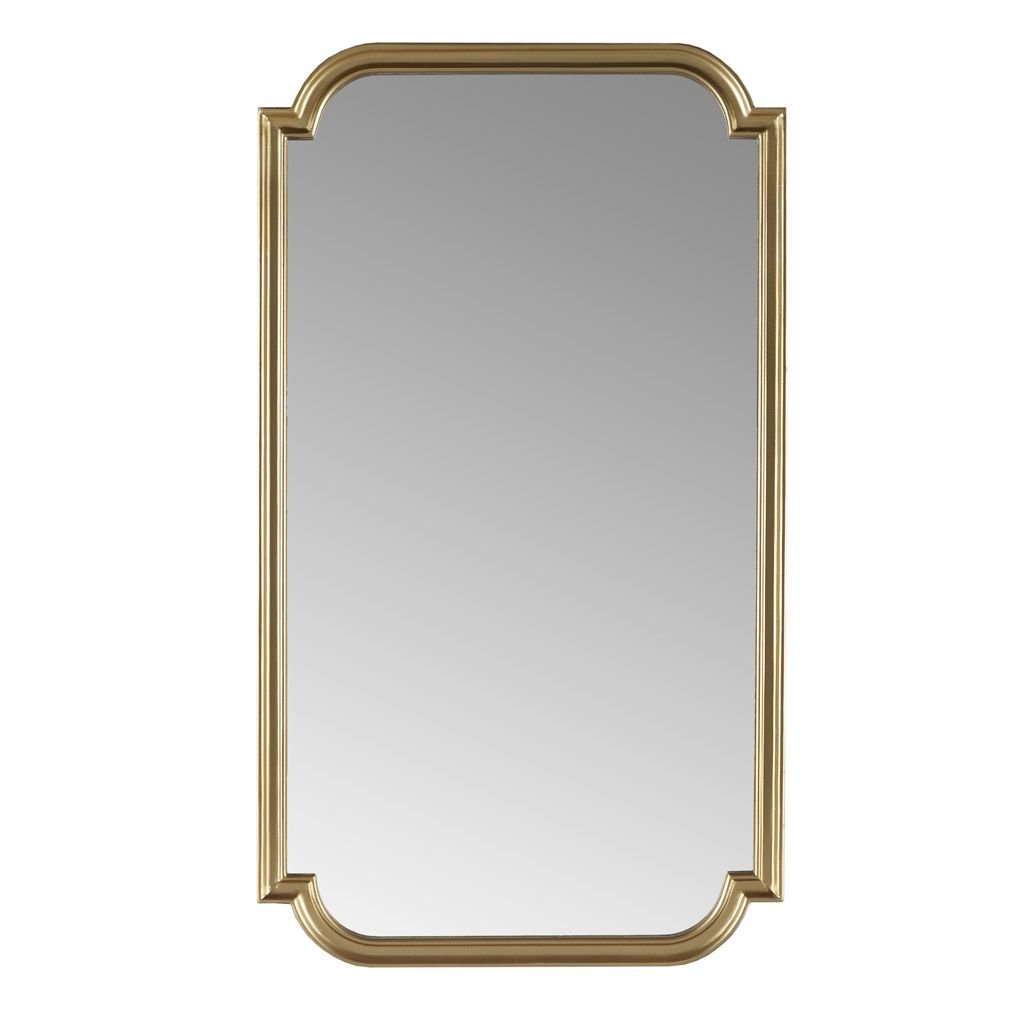 Adelaide Wall Mirror from Madison Park is a timeless piece that adds elegance to any space. With its rectangular shape and scalloped corners, this mirror is perfect for bedrooms, guest rooms, living rooms, or entryways. The wood frame features a metallic gold finish, adding a glamorous flair to your decor. Crafted with mirrored glass on a sturdy MDF backing, this mirror is built to last. It comes ready to hang with convenient D-ring hangers, and its asymmetrical shape allows for versatile hanging options—vertically or horizontally.